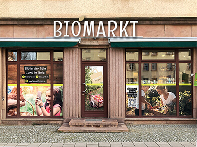 Von der Geschäftsausstattung über Anzeigen und Fahnen, bis hin zu Lastenbikes und den Fahrzeugen, hat der Biomarkt NB eine Rundum-Erneuerung bekommen.